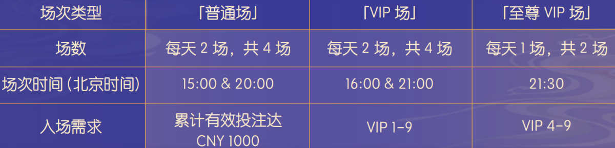 b)「VIP 场」 :所有 VIP 玩家均可参与;