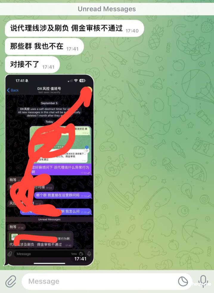 9月注册的代理线 朋友那边的大哥玩的 本身大哥在那边线就输了小百万了,不太想玩了 就换到我这边 也是输钱的 朋友那边线就没玩了, 只是10月红了2000U 朋友那边红了2000U 一共不到4000U 但是代理线负盈利9月 1.6万U 直接给我取消了
